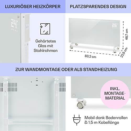 - TRAGBARE UND PRAKTISCHE HEIZUNG: Mit dem mitgelieferten Montageset kannst du diese elektrische Heizung an der Wand anbringen. Die Bodenrollen und das 1,5 m lange Kabel ermöglichen es dir, die Position des Heizkörpers überall und sofort zu ändern.
