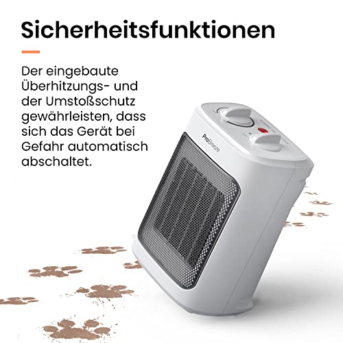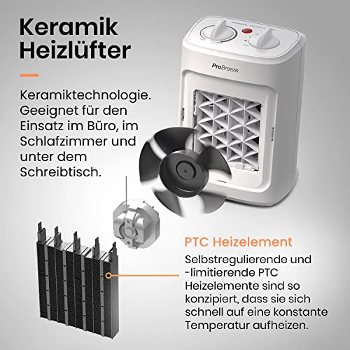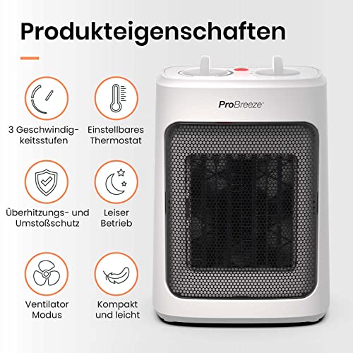 Pro Breeze 2000W Mini Keramik Heizlüfter mit Kaltstufen und drei Leistungsstufen – für Betrieb im Büro, Wohnzimmer, Schlafzimmer oder Terasse – Weiß