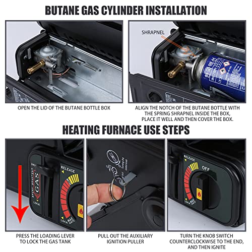 - Effizientere Gasheizung: Die Tragbare Gasheizung für Innenräume ist aus speziellen Metallen für eine bessere Wärmeleitfähigkeit gefertigt. Gleichzeitig verfügt die Tragbare Gasheizung für Innenräume über einen Verbrennungsschornstein mit den neuesten Konstruktionslösungen für eine vollständige Gasverbrennung, der schneller und effizienter heizt und die Möglichkeit einer unzureichenden Gasverbrennung wirksam reduziert. (Bitte beachten Sie, dass Sie das kleine Fenster zur Belüftung öffnen müssen, um Ihre Sicherheit zu gewährleisten)